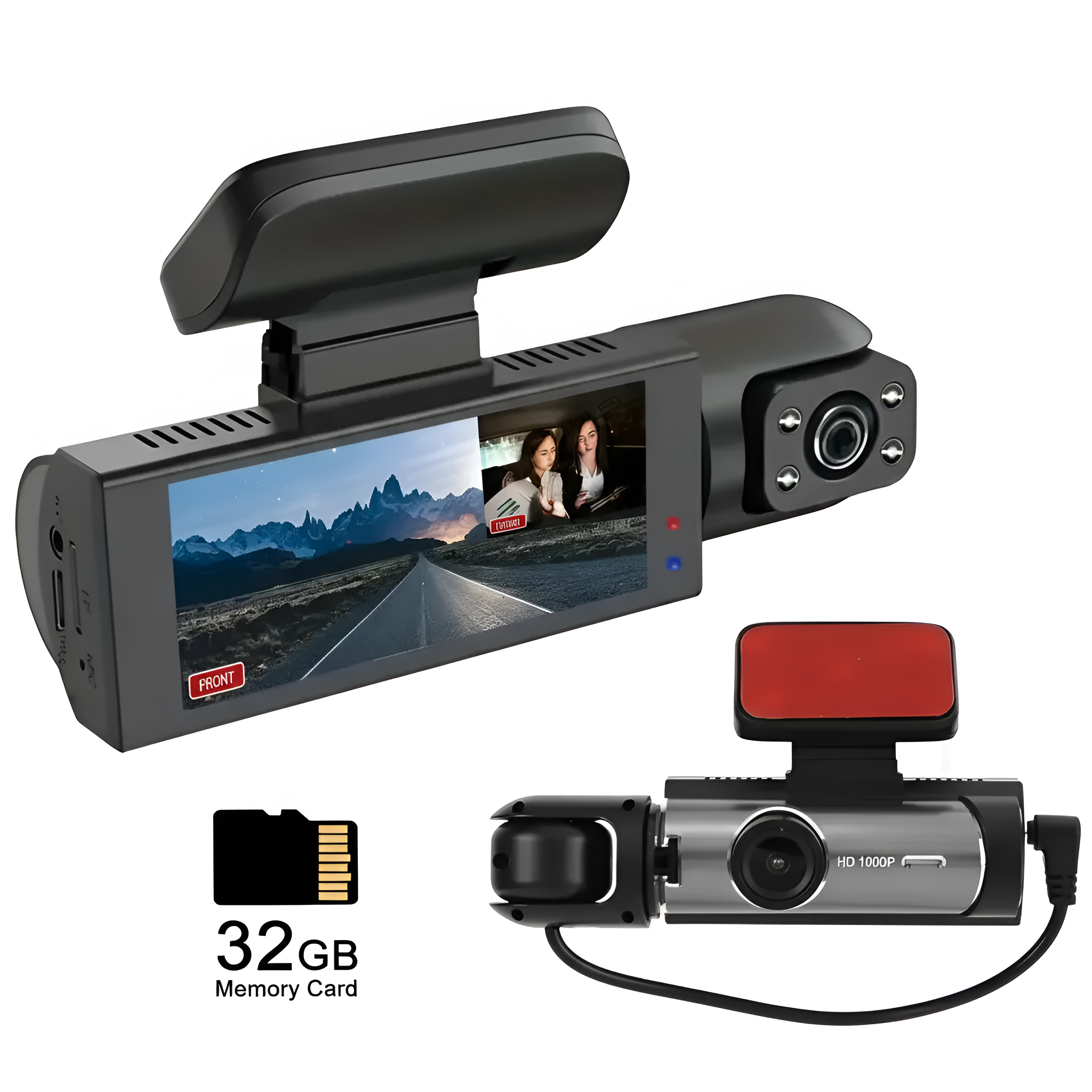 Enhance your driving experience with this 1080P Dual Lens Dash Cam With Wide Angle And IR Night Vision, designed for clear and consistent recording. Equipped with both front and interior cameras, it captures key moments throughout every journey. The 1080P resolution delivers detailed footage, while the wide-angle lens provides broader coverage. Featuring a built-in screen and an easy-to-use design, this device is well-suited for everyday use.