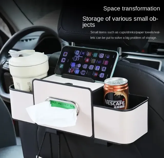 - 3-in-1 Functionality: Combines a cup holder, tissue box, and storage organizer in one sleek design.