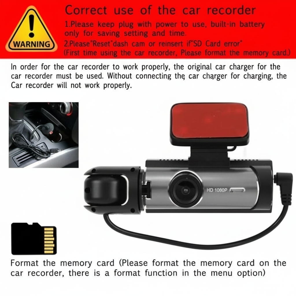 The Dual Lens Dash Camera records both front and interior views in 1080P HD quality. Featuring wide-angle lenses, night vision, and a built-in screen, it ensures clear footage in all conditions. Compact and easy to install, it supports memory card storage and is ideal for daily driving, safety monitoring, and recording trips with reliable performance.