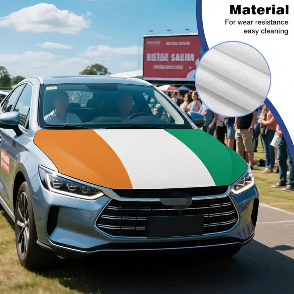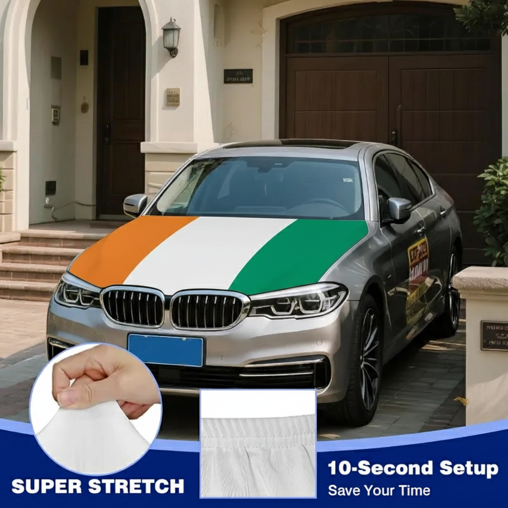 This Official FIFA 2026 Côte d'Ivoire Flag Car Hood Cover is designed to give vehicles a bold patriotic appearance while providing practical hood coverage for everyday driving. Measuring approximately 4 x 5 feet, it offers a universal fit suitable for most cars, trucks, and SUVs. Crafted from stretchable polyester fabric, the material fits smoothly over the hood area and maintains a neat look during regular use. The clear tricolor design creates a striking visual display, making it suitable for sporting events, national celebrations, parades, and daily decoration.