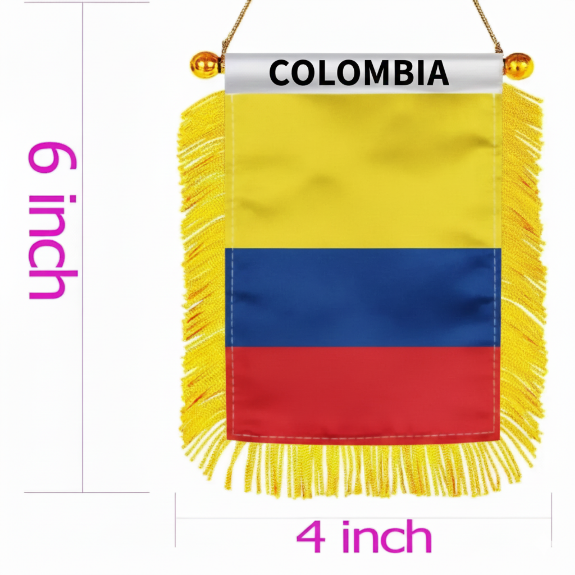 - 4 x 6 inch double sided Colombia flag design