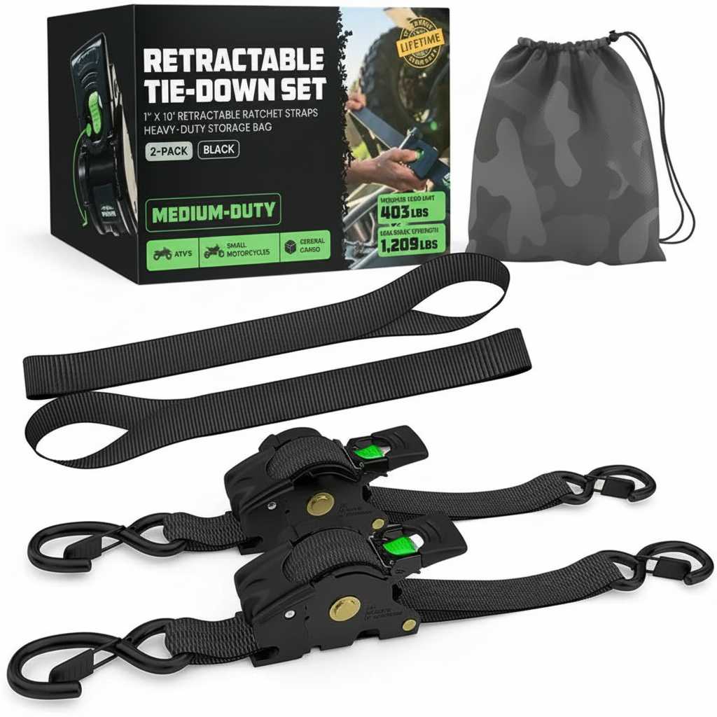 This set is engineered with a retractable mechanism that shortens or extends as needed. Whether you're managing equipment for a vehicle, workshop, or outdoor event, the straps respond to motion and shifting surfaces with consistent pull tension.